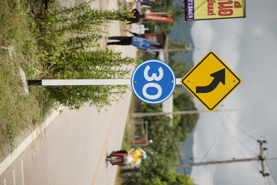 • ป้ายเตือนโค้งซ้าย + กำหนดความเร็ว จำนวน 1 ชุด