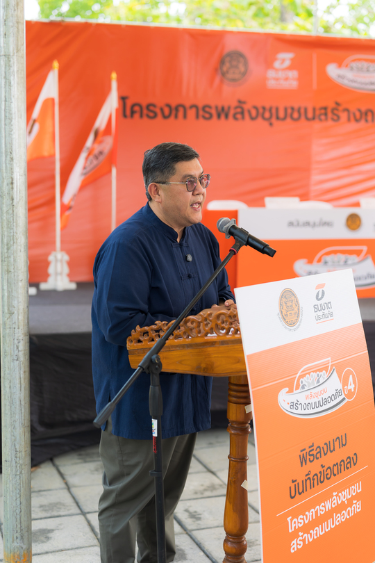 นายสุวัฒน์ ระดมสุทธิกุล ที่ปรึกษาด้านการบริหารสินไหมทดแทน บริษัท ธนชาตประกันภัย จำกัด (มหาชน) ลงนามร่วมกับ นายประจักร์ จินดาจำรูญ นายอำเภอเด่นชัย นายดำรงเกียรติ กิตติประภัสร์ นายกเทศมนตรีตำบลเด่นชัย และนายพุฒิเศรษฐ์ สุธรรมศุภเจริญ กำนันตำบลเด่นชัย พร้อมกิจกรรมส่งมอบธง “พลังชุมชนสร้างถนนปลอดภัย” ให้กับเทศบาลตำบลเด่นชัย และกิจกรรมติดตั้งอุปกรณ์ที่เป็นนวัตกรรมลดจุดเสี่ยงบนท้องถนน