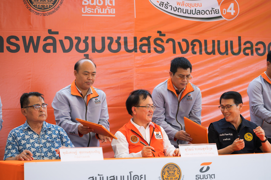 ธนชาตประกันภัย ผนึกกำลังภาคีเครือข่ายเพื่อความปลอดภัยทางถนน โดยนายชัยสิทธิ์ ชัยสัมฤทธิ์ผล รองผู้ว่าราชการจังหวัดแพร่ เป็นประธานในพิธีลงนามบันทึกความเข้าใจความร่วมมือ “โครงการพลังชุมชนสร้างถนนปลอดภัย ปี 4” แก้ปัญหาจุดเสี่ยงบริเวณทางโค้งอันตรายหน้าป้ายหมู่บ้านปากพวก หมู่ 10 พื้นที่เทศบาลตำบลเด่นชัย จ.แพร่